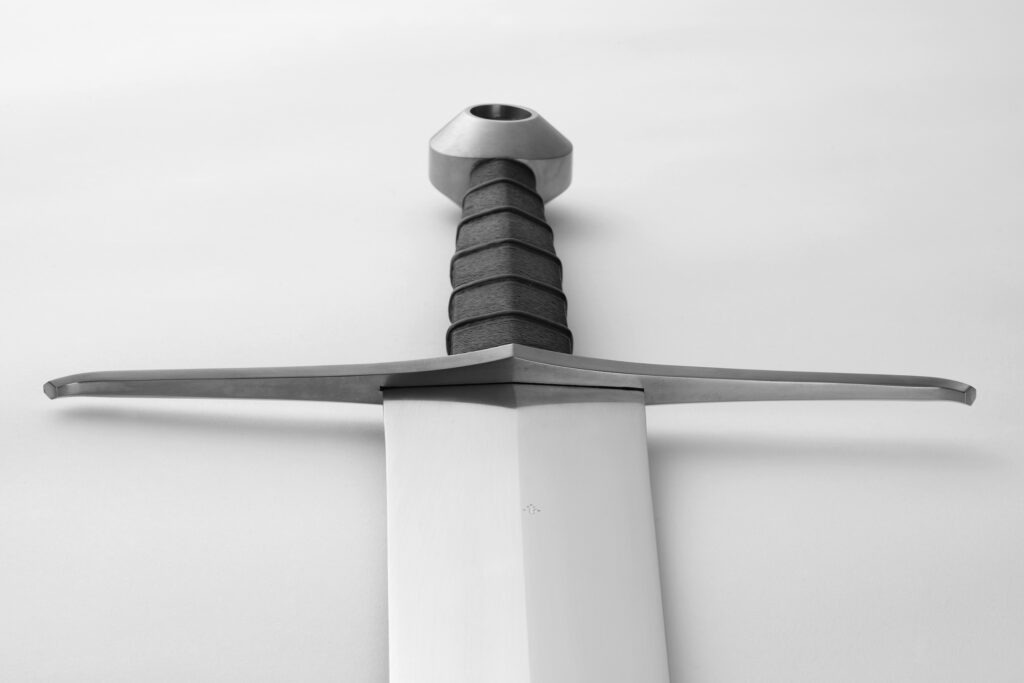 Proportion between hilt and blade is 3:11, a prime number ratio that is always the result of a design where the guard is placed in the first Vesica. The width of the blade is one quarter of the diameter of the basic circle. The width of the pommel is a sixth of the diameter of the basic circle and the width of the guard is defined by an equilateral triangle inscribed into the basic circle. The design is made according to the idea that all parts should come together into a meaningful and harmonious whole, a notion that was as important to medieval philosophers as it was to artists and artisans.
