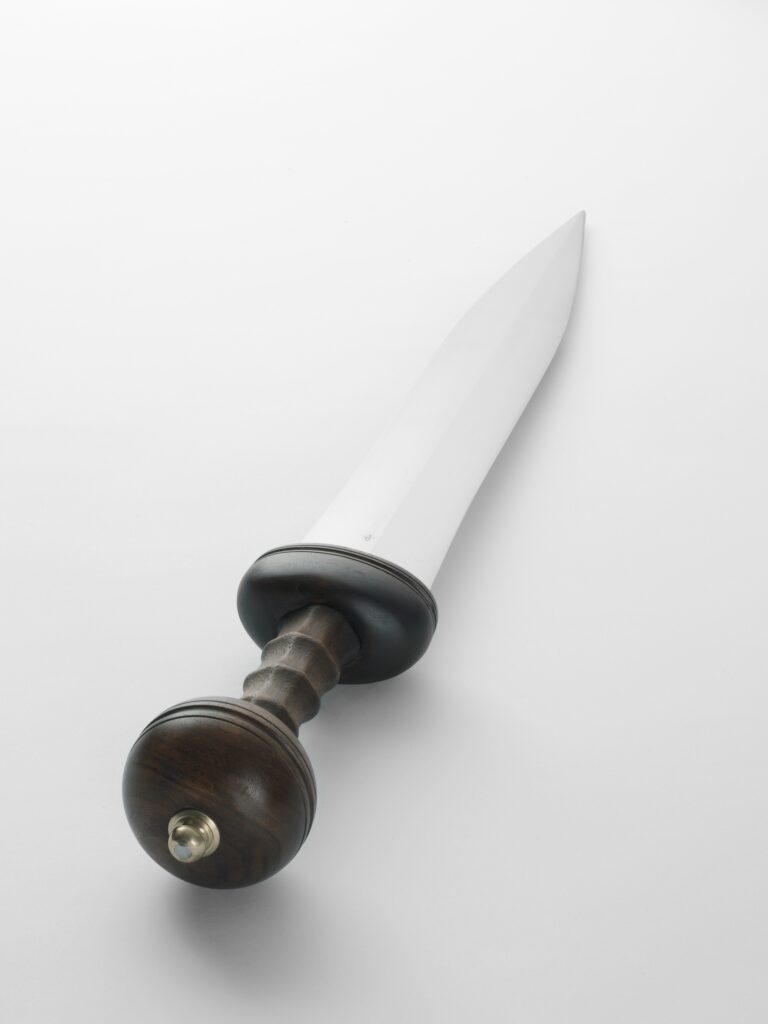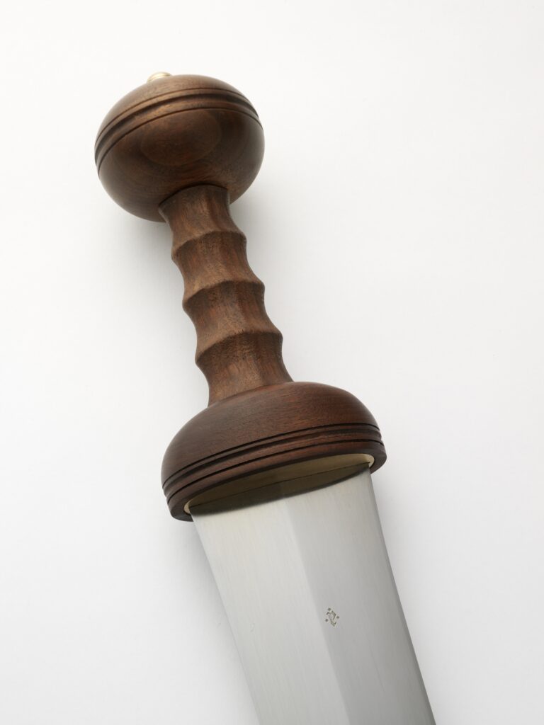 The Mainz type gladius is an iconic Roman sword. This is the sword famously used by Roman soldiers in the early Imperial period. Our Augustus Mainz is a typical example of the classic subtype, with its broad base, gently waisted profile and long strong point. It saw use in the period from about 25 BC (or slightly earlier) to around 50 AD. The Roman Legions were renowned for the brutal fighting spirit of individual soldiers as well as the discipline and organization of the army units. Romans were ever keen on adapting successful ideas and tactics of their enemies. Over the centuries the arms and armor of the Roman armies changed as tactics evolved and were refined. After experiences in the Punic wars, where the Romans were impressed with Iberian warriors who used a medium length La Téne II sword (a weapon that survived in active use in the northern part of Spain long after Celtic warriors in other parts of Europe were favoring longer blades), Roman troops started using a sword they named the “gladius Hispaniensis”. Over time this sword became shorter and broader into the sword we know recognize as the Mainz type, (with its various sub types) and later culminated in the pragmatic and eminently practical”Pompeii” style stabbing sword.