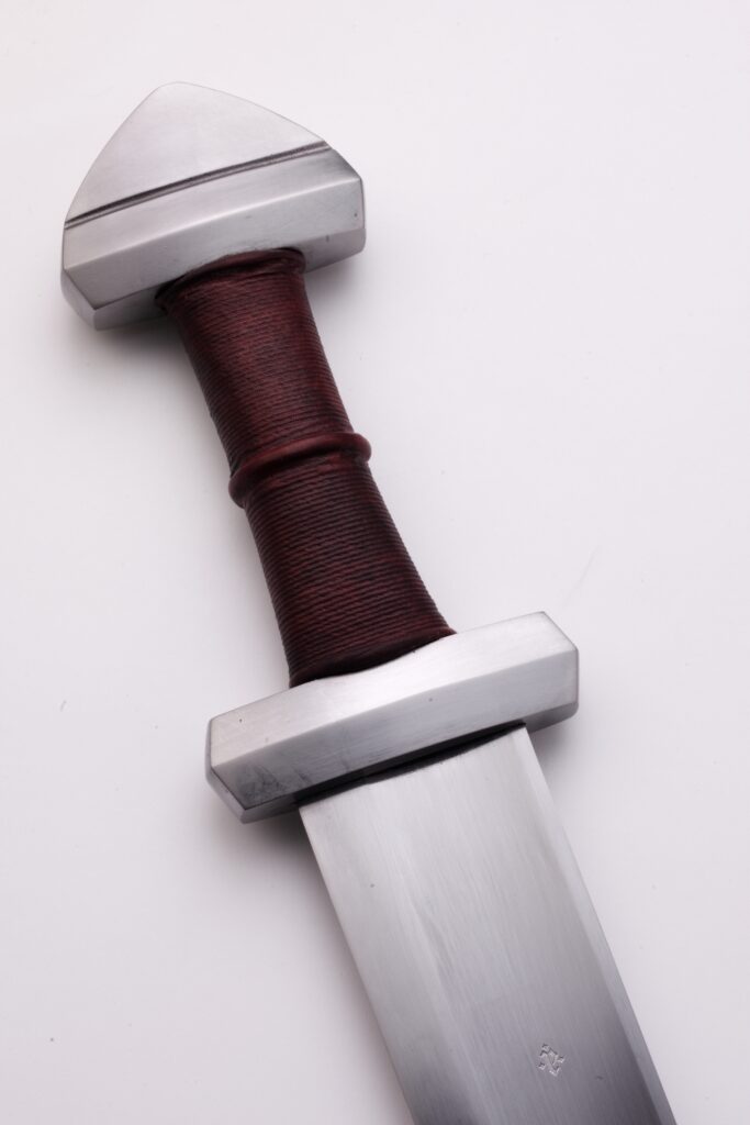 The hilt components are investment cast in mild steel from original waxes carved by Peter Johnsson, based on Peter’s first-hand examination and documentation of period originals of this type. The hilt of the Berserkr is of Petersen type B, very similar to the Type H, but slightly less rounded and more “blocky.” The pommel is one piece.