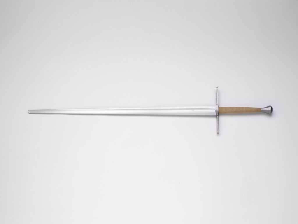 This sword exhibits the handling characteristics of the swords used in the Liechtenauer’s manual of Armoured Fencing (Kampffechten or Harnischfechten) as recorded in the Codex 1449 manuscript compiled by Peter von Danzig in 1452, Danzig’s fechtbuch. This sword would also be suitable for practice of the techniques illustrated in the manuals of Talhoffer, Ringeck, and Fiore. This sword is a suitable practice equivalent for the Next Generation Ringeck, Talhoffer, Fiore, Sempach, Landgraf, Regent, Earl The sword features rounded edges, stainless steel hilt components, and a treated cord-wrapped grip.