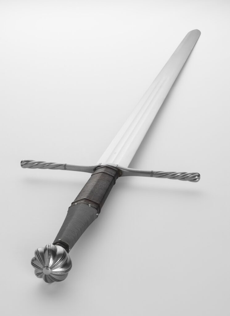 The Maximilian is inspired by the many examples of smaller zweihander (zweihander = two-hander) swords carried by the Landesknecht, or German mercenaries of the 15th and 16th centuries. The term Landsknechte was first coined by Peter von Hagenbach, recorder for Charles the Bold of Burgundy, meaning “servant of the country (land),” and first began appearing in common use in approximately 1470. The appellation was given primarily to the mercenary soldiers from the areas of Alsace, Baden Wurttemburg, and Austrian Tyrol who were trained to fight with pikes, zweihanders and later with the early firearm, the arquebus.