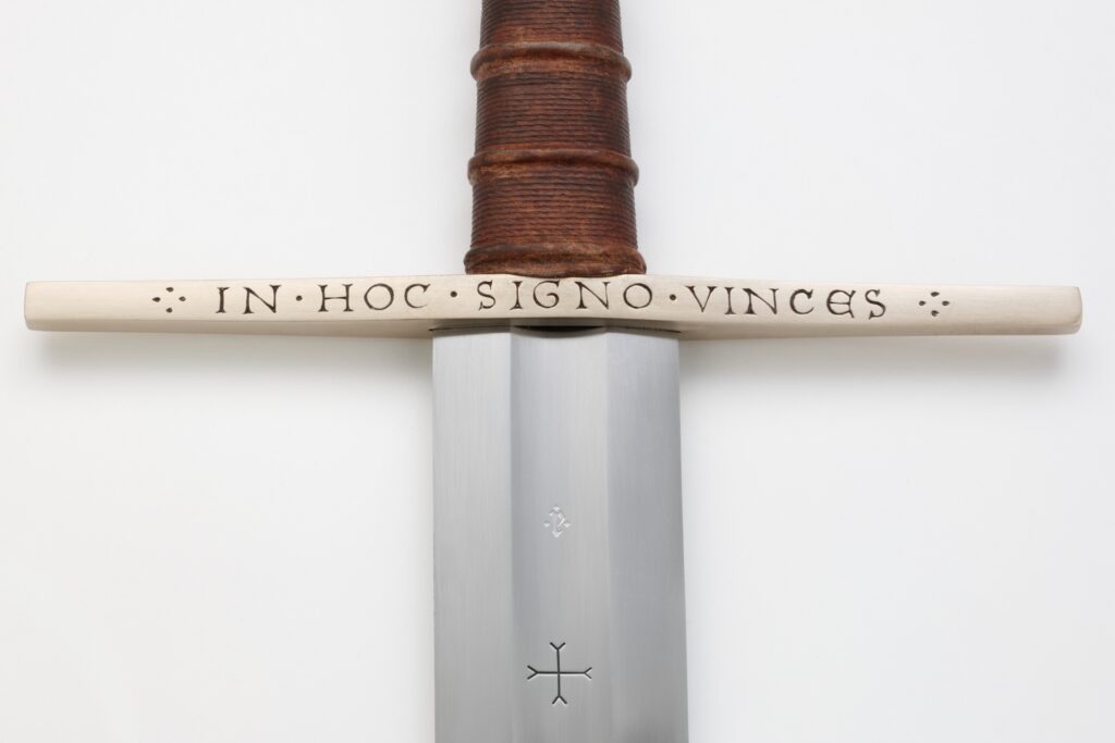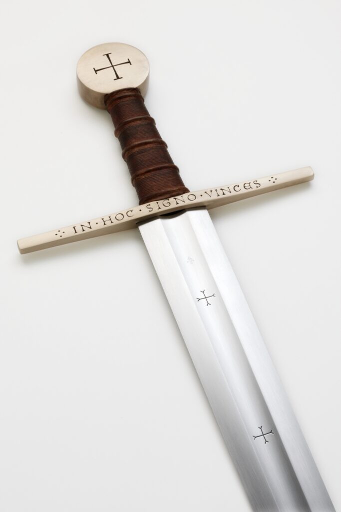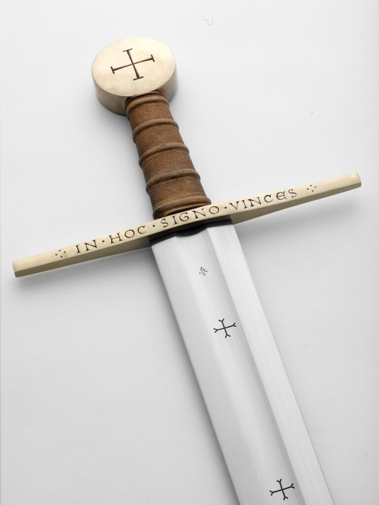 The sword is simple, clean and magnificent, with a long and lean blade, bearing the inscription: ‘In Hoc Signo Vinces’ on the guard (“In this sign thou shalt conquer”). The blade also has three incised crosses, similar to the ones found on the Sword of Saint Marice (Turin). Arn’s sword is the symbol of his mission – of the cross in Christianity, and the battle for Good.