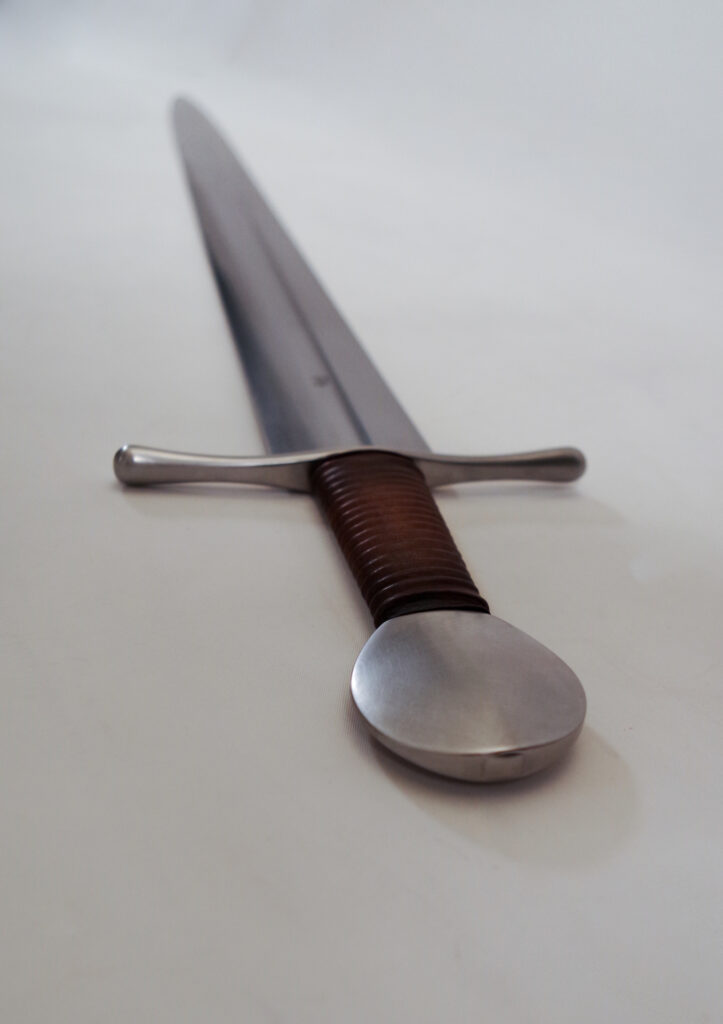 The sword has a wide blade and a fuller running almost its whole length. The guard is slim with a slight and graceful curve towards the blade. The pommel is wide and surprisingly slim. It was made to be a light weapon for swift maneuvers and biting cuts. Its proportions suggest its maker was concerned not only with the tactics of the battlefield but also with the deeper meaning of knightly duties and virtues. The Albion Museum Line version of this iconic weapon is based on hands-on documentation of the original. Its outline and original shape have been carefully reconstructed following precise tracings and measurements.